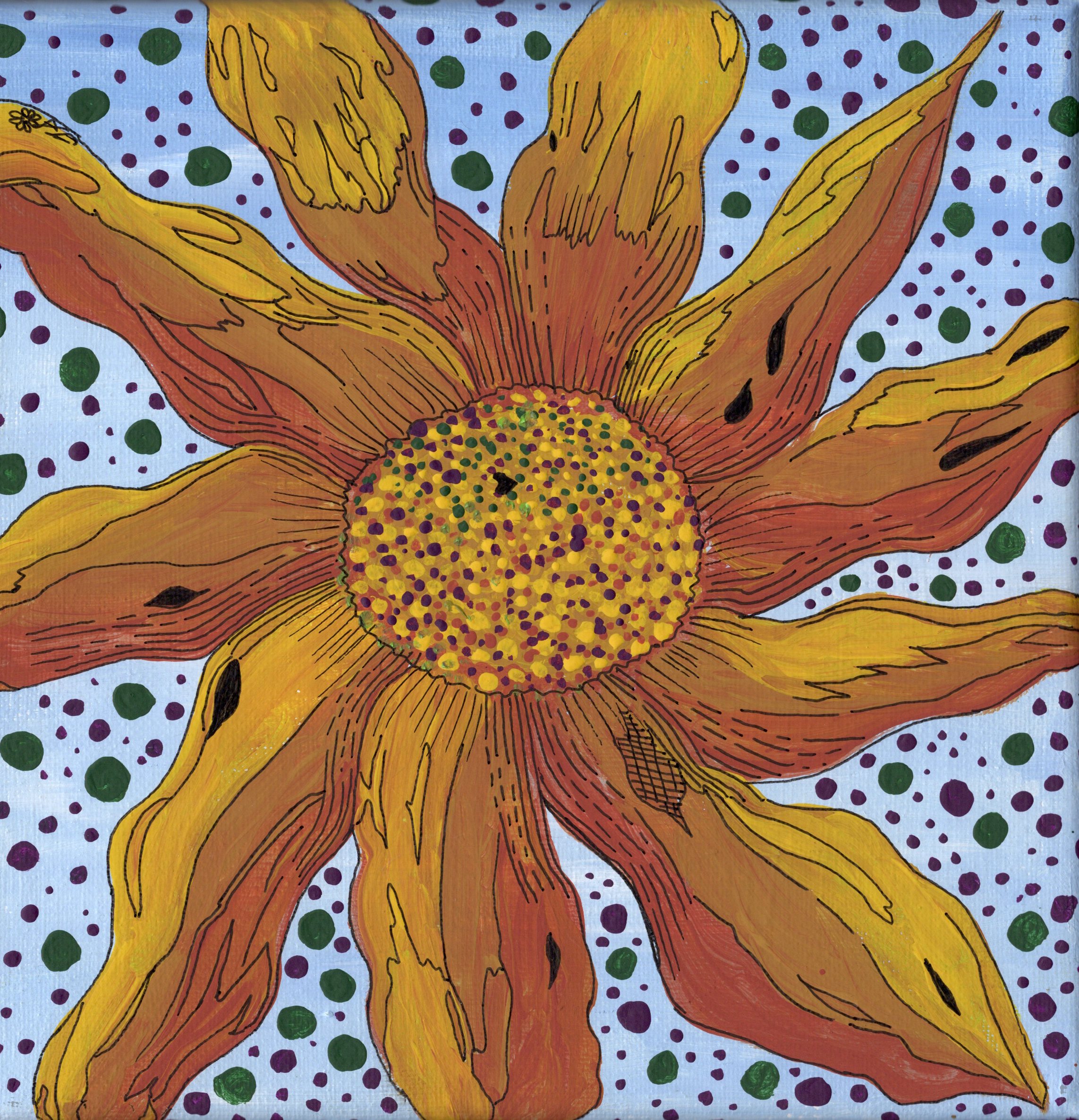 Sunflower Polka - Acrylic Painting on Canvas Size: 8 x 8